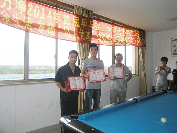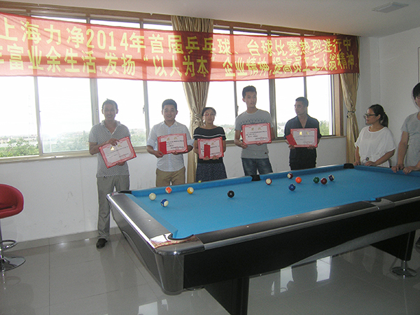 上海力凈洗滌機械制造有限公司為了豐富員工的業余文化生活,提高員工身體素質,發展大家的興趣和愛好,本著“以人為本”的企業精神,發揚員工主人翁的精神,也為進一步推進公司企業文化落地的堅實腳步,樹立良好的企業形象,營造企業大家庭氛圍,體現公司關愛員工的企業核心價值觀,加強員工之間的交流與溝通,為工作中的溝通打下良好基礎,在這個驕陽似火的7月舉辦了一場轟轟烈烈,熱熱鬧鬧的2014年首屆乒乓球、臺球賽,以增加各部門員工之間的交流和友誼,公司采取個人自愿報名的形式,各位員工踴躍報名,共有48人參加了此次活動,桌球28人,乒乓球20人,比賽地點:公司員工娛樂室,大家心情愉悅,熱情高漲。