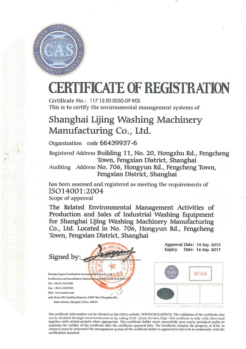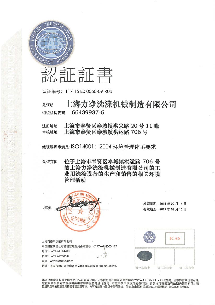 熱烈祝賀上海力凈ISO14001:2004質量環境管理體系認證通過