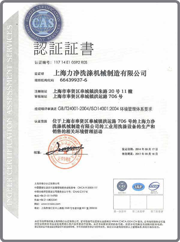 2、經過全體員工近半年的努力,公司于2014年9月順利通過國家專業認證審核,獲取了ISO14001:2004環境管理體系認證;